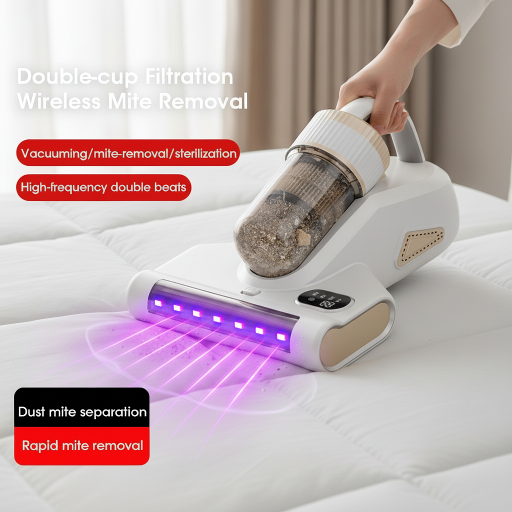 Mattresses and upholstery trap dust mites, allergens, pet hair, and microscopic debris that regular vacuums often miss. Our Cordless Mattress Vacuum Cleaner is designed specifically to deep clean fabrics and bedding, helping remove hidden particles that affect sleep comfort and air quality.