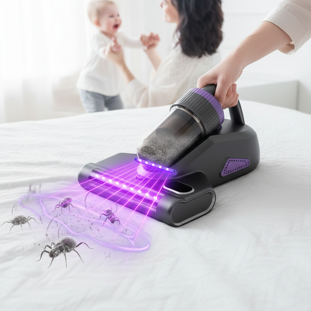 Our Cordless Mattress Vacuum Cleaner uses powerful suction and advanced cleaning technology to lift hidden dust, allergens, and pet hair from deep within fabrics, helping you create a cleaner sleeping environment for you and your family.